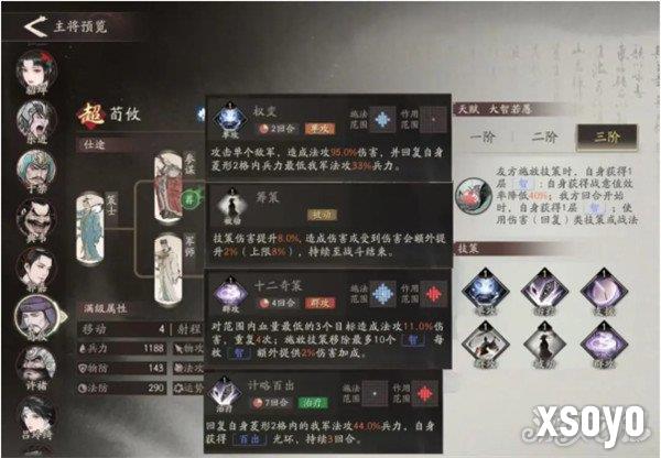 其实就是这几个矛盾的机制结合在一起,就能带来连锁性的反应,可形成左右开弓的一个存在;在前方,骑兵是强力版本,他的另一个技能名门亨通就能很好的辅助张辽,吕玲绮这些近战的输出;后方:他能增加巨额战意,背上被动的才略,即便是荀攸的战意减少40%的负面不丰富,也能轻松使用战法;