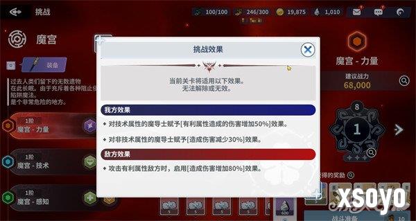 攻略「魔宫」副本的重点就是力量克制感知,感知克制技术,技术克制力量的相互克制关系。