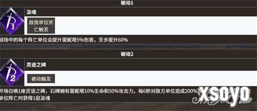 汲魂和灵语之碑构成了艾尔德林诺的被动体系。汲魂在敌人死亡后触发,每层提升5%伤害,最多叠加至60%,意味着随着战场减员,艾尔德林诺的输出会逐步攀升。而灵语之碑在战斗开始时自动召唤,拥有艾尔德林诺50%攻击力与10%生命值,每隔6秒对敌人发动一次200%魔法伤害的攻击,并在敌人死亡时额外提供一层汲魂效果。这座石碑既是稳定输出源,也是加速伤害叠加的重要助力。