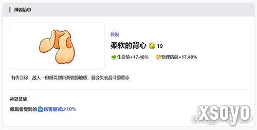 第6件神器为大家推荐柔软的背心,这个神器本身是适合给一些辅助类角色使用的,因为它主要的加成是放在生命值以及物理防御属性加成上面的,所以在技能上面使用的话,可以减少对面受到的伤害数值,也是会有很强的抵御效果。
