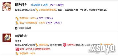 即决判决这就是一个主要的输出技能,冷却的时间是26秒。挥舞法槌就可以直接造成范围性的物理伤害,最后一次攻击就更加的厉害,不仅伤害很高,也可以直接砍掉敌人的护盾,如果遇到一些带有护盾的敌人,那简直就是一个克星。普通攻击确实也会比较讲究,基础攻击是80%的物理性伤害,如果是打在有三层审判的敌人身上,那就可以直接追加160%的物理性伤害。在经过强化之后会更加的离谱,会造成110%的范围性伤害,并且还会有一个审判的优势。