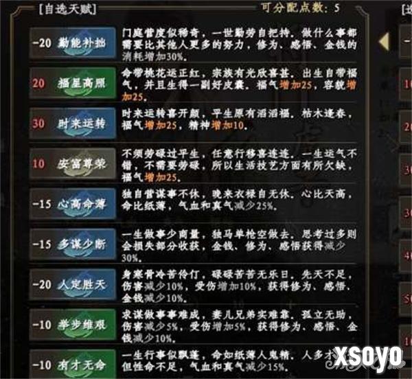 4、此外,还有一些其他类型的天赋,比如增加悟性、精神等,你可以根据自己的需求和玩法来选择合适的天赋。