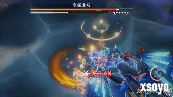 紧接其后,将释放逆时针方向90°角的寒霜喷射,具备冻结效果且伤害极高,建议根据龙头转动方向同步移动进行规避。之后BOSS升空盘旋一周后落地,并逐步释放向外蔓延的冰环,只要始终保持在冰圈扩散范围之外,即可避免受到致命打击。