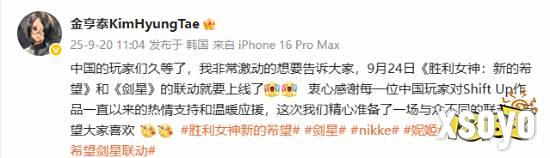 《胜利女神:新的希望》国服将于9月24日开启与《剑星》的重磅联动版本"星之追忆者"。《剑星》制作人金亨泰亲自致谢中国玩家,承诺本次联动将带来"与众不同"的体验,剧情将围绕地面惊现神秘人类的悬念展开。