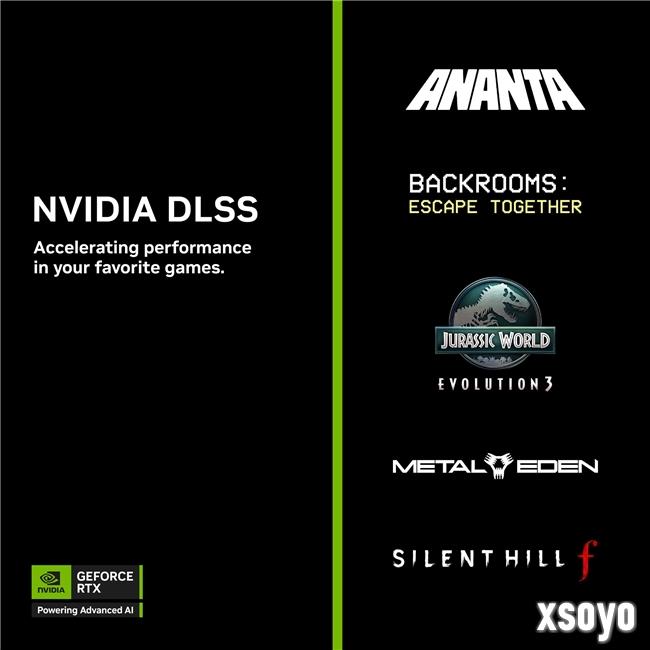 DLSS 4多帧生成为《无限大》(ANANTA)、《侏罗纪世界:进化 3》(Jurassic World Evolution 3)、Backrooms: Escape Together和《合金天使:堕入伊甸》(Metal Eden)等游戏带来性能倍增。《寂静岭 f》(SILENT HILL f)本周首发即支持DLSS超分辨率。