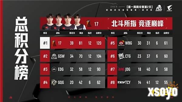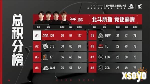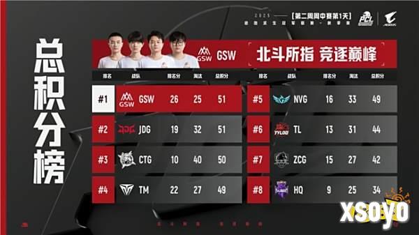 第一天结束后,GSW拿下榜首,随后是JDG和CTG,来自NVGR WIND拿到了战神榜榜首。