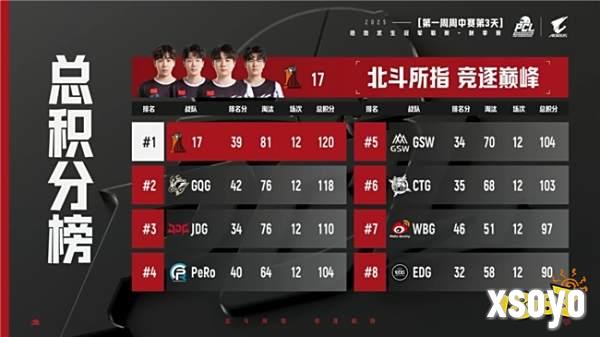 本轮过后,17战队依然排名第一,随后是GQG和JDG,PeRo战队的Aixleft则是再次拿到了战神榜首。