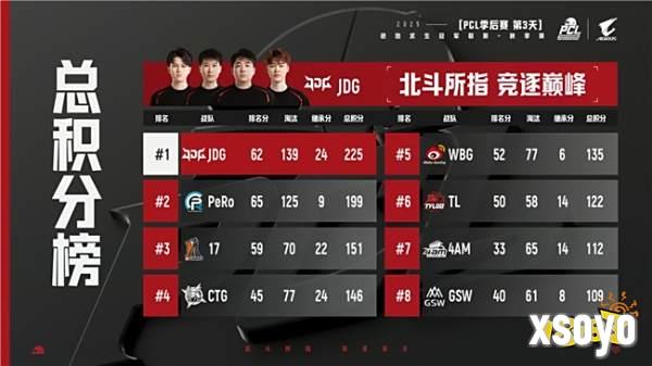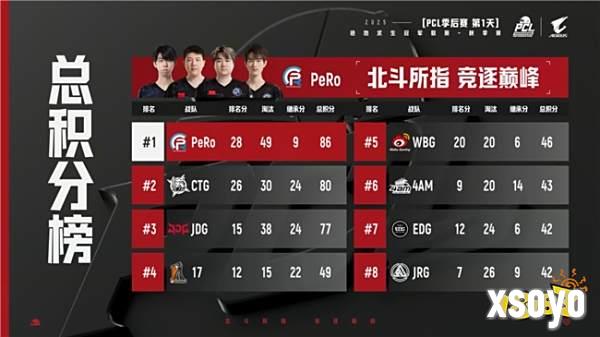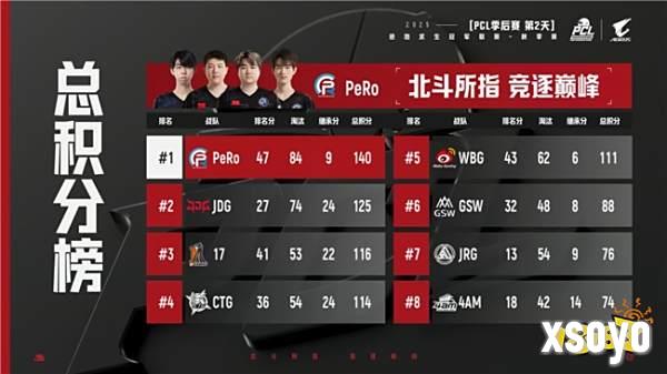 第二天比赛过后,PeRo战队继续领先,JDG和17战队紧随其后。