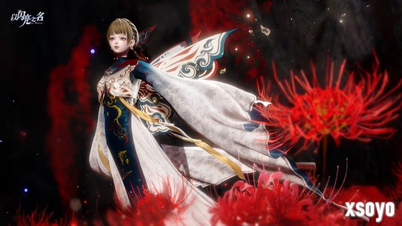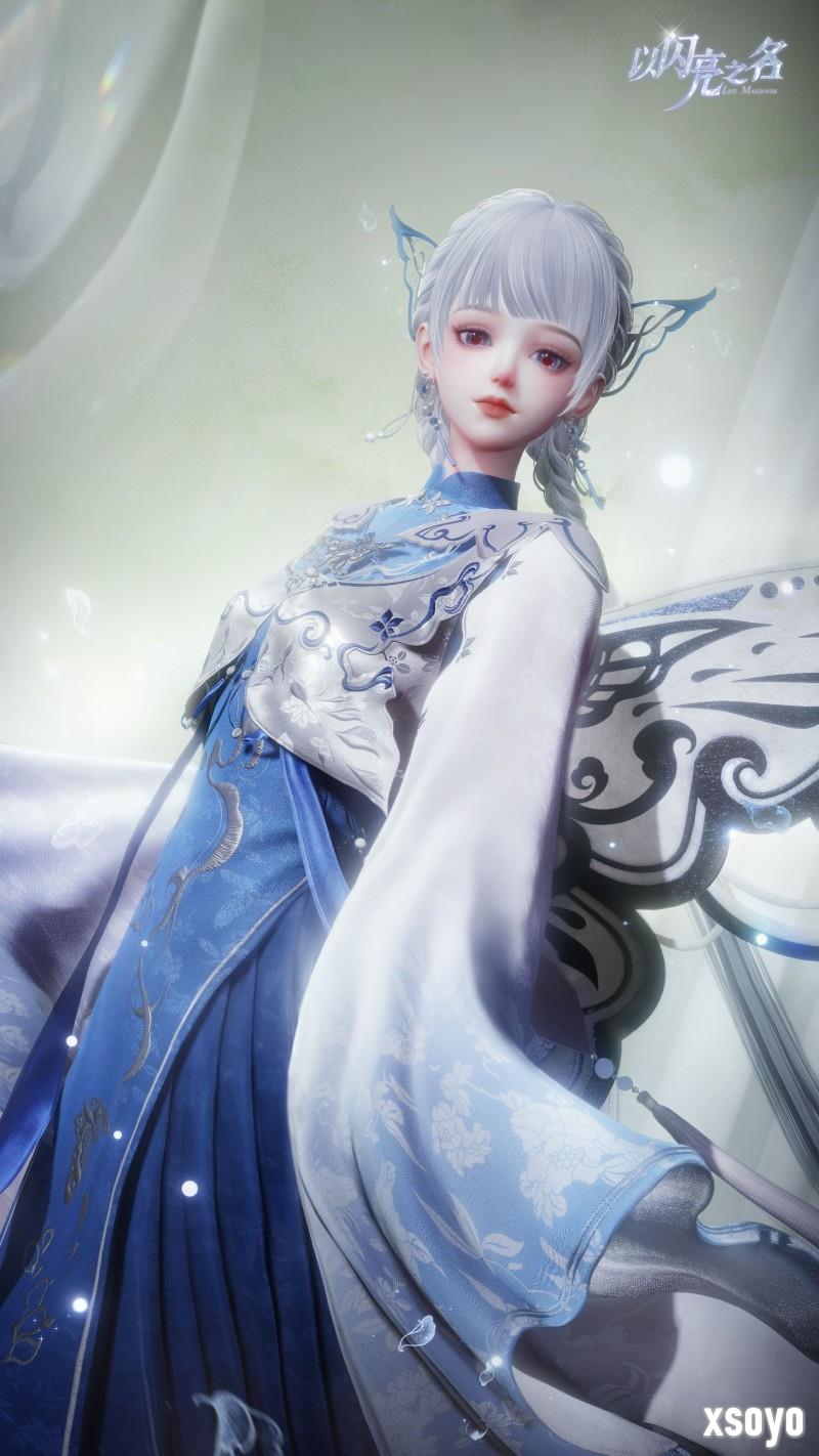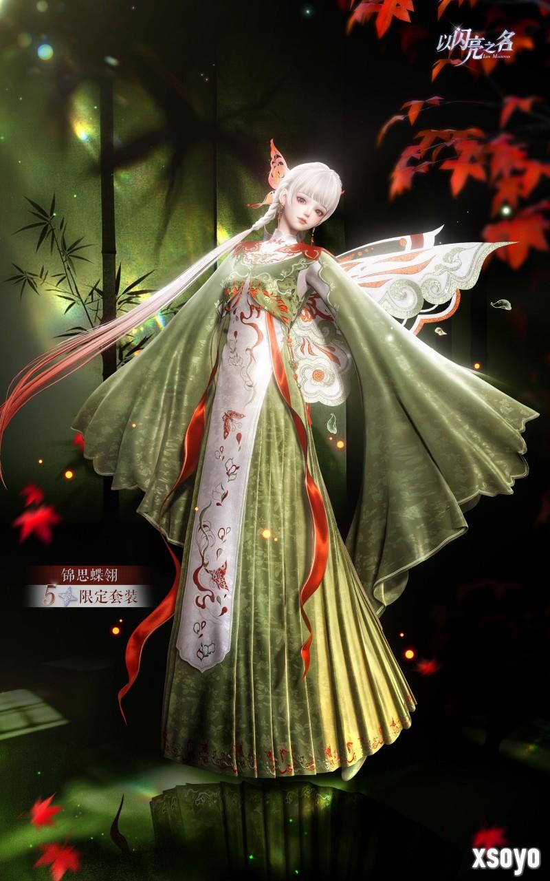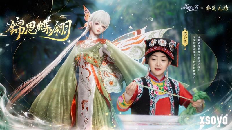 如果说梦遐绮旅六星时装是西式童话幻想的狂欢,那五星锦思蝶翎套装则是东方美学的深情表达。这套时装特邀非物质文化遗产羌绣代表性传承人陈云珍老师联合创作,将千年羌绣技艺与新中式设计融合,让非遗文化在数字世界焕发新生。