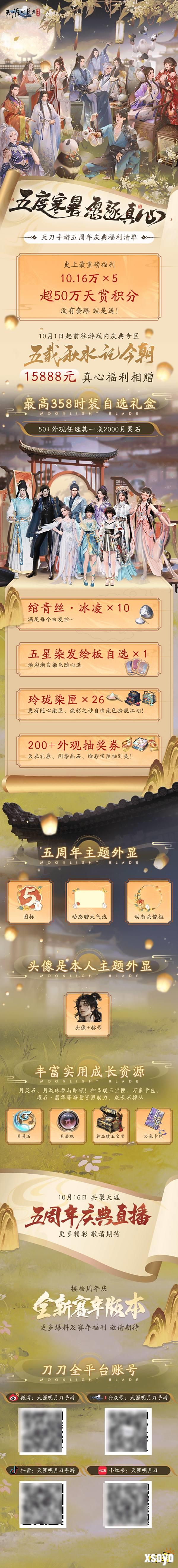 你想要的这里有,史上最重磅、最丰厚、最敢玩的大礼来了!10.16万*5,共超50万天赏积分将在10月16日周年庆直播中一次性送给所有少侠!没有套路,无需任何操作,直接邮件发放,全民普赠!