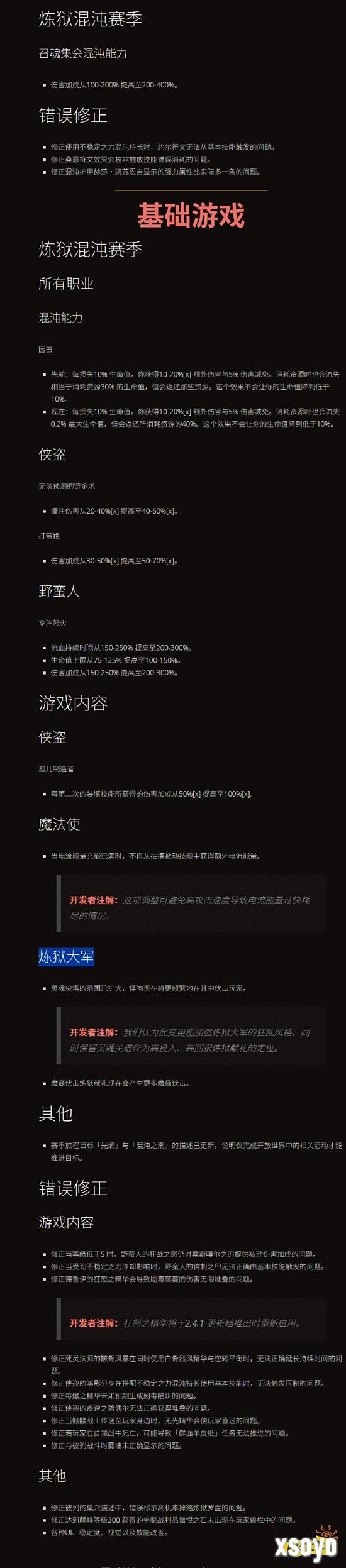 《暗黑破坏神4》于2025年10月8日推出“炼狱混沌赛季”首个重大更新,重点调整了召魂集会混沌能力(伤害加成从100-200%提升至200-400%)并对全职业进行平衡性优化,其中游侠(Rogue)职业增强显著(如“无法预测的炼金术”灌注伤害从20-40%提升至40-60%)。同时优化了炼狱大军玩法(扩大灵魂尖塔范围、增加魔裔伏击频率),并修复了德鲁伊“狂野之怒精华”导致的技能异常等多项问题。随着第十赛季进入中期,游戏已基本完成2025年内容路线图,据透露全新资料片预计于2026年推出 。