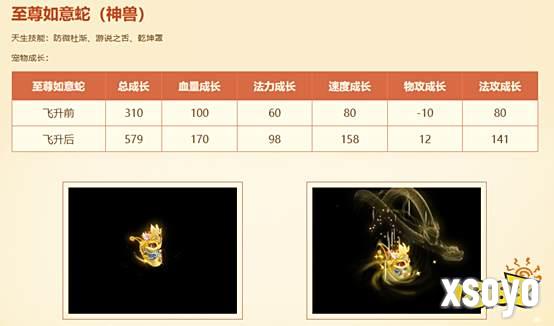 进阶成为神兽宠物“至尊如意蛇”的方法:参与“超级藏宝图”和“特级藏宝图”挖宝活动、以及寻仙问道抽奖码,有概率获得稀有道具—至尊如意蛇精魄,在“灵兽异人”处给如意蛇服用至尊如意蛇精魄可进阶为神兽宠物“至尊如意蛇”。