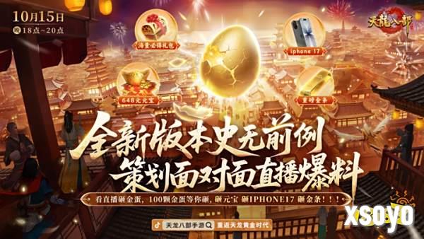 想要知道新版本的猛料?10月15日18:00-20:00,请锁定天龙八部手游抖音官方直播间。策划大大将来到直播间,带大家抢先领略新的江湖。
