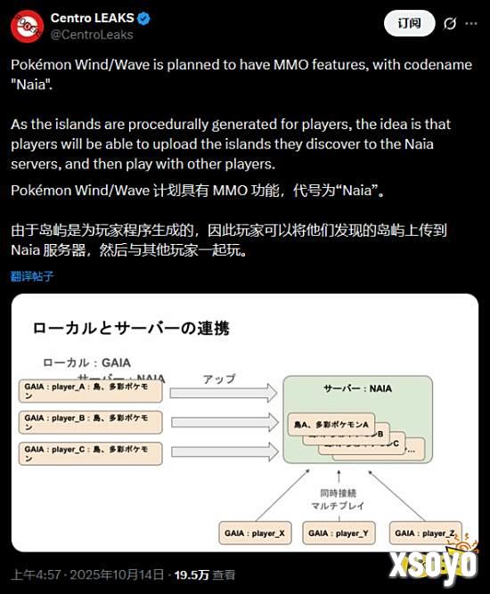 爆料还显示Game Freak计划在第十世代中融合MMO玩法元素。该MMO功能代号为“Naia”,玩家可以将自己探索到的程序生成岛屿上传到Naia服务器,与其他玩家共同游玩。
