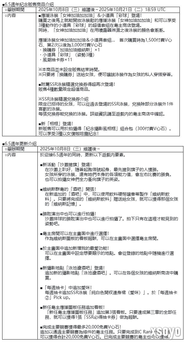 此外,随著迎接6.5周年,维纳斯群岛也新开张了「酒吧」,并追加了新拍摄景点「泳池边酒吧」等可以和女孩们进行更多有趣互动的更新。