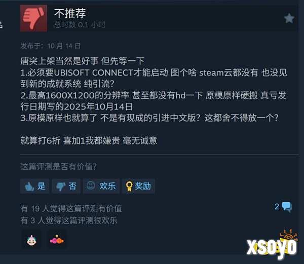 据玩家反应,《细胞分裂2:明日潘多拉》必须使用UBISOFT CONNECT才能启动,分辨率最高只有1600x1200,甚至没有高清分辨率,属于照搬原版。