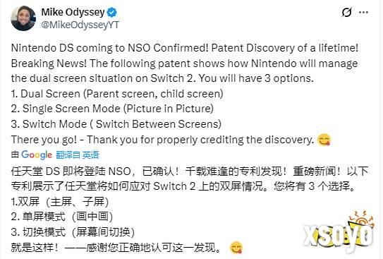 2025年10月16日,任天堂公布一项针对Switch 2的可拆卸双屏配件专利,该配件通过磁吸结构实现与主机的灵活连接,提供双屏、单屏画中画及内容切换三种显示模式,旨在原生复刻DS/3DS及Wii U的双屏游戏体验,并为Nintendo Switch Online+未来引入经典游戏库铺平道路 。