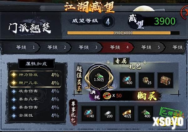 从初出茅庐的虾米到闯荡江湖的大侠,必不可少的就是各种奇闻奇遇,以及功力的成长过程了。《千击武侠沉默》中设计了一个完整耐玩的任务系统,玩家跟着主线一路完成任务可以获得江湖威望,威望一方面可以解锁下一阶段的任务,一方面可以提升威望等级,从而获得属性加成和各种奖励。