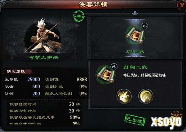 还记得在初入江湖时结缘的那位江湖侠客吗?离开第一大陆后TA也飘然而去,但江湖讲的就是四海之内皆兄弟,很快玩家就会接触到更多这样的“伙伴”,比如说在第二大陆,拜入丐帮后不久,通过指定任务就能认识一个“丐帮大护法”侠客,他会隔一段时间出现一次,帮助玩家战斗,除了普通攻击外,他还有概率触发群体切割伤害,对于初入江湖不久,输出能力不强的玩家来说是个非常靠谱的伙伴。