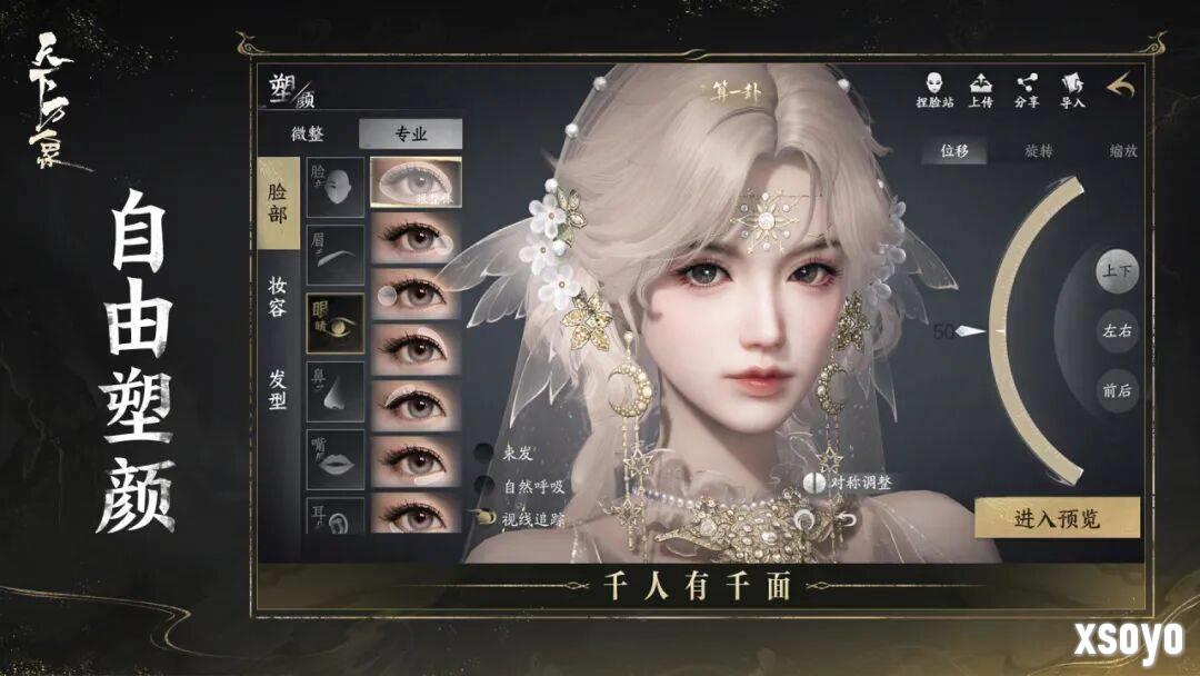 在《开天:万象》中,少侠们马上就能体验到随心所欲为自己塑造容貌的快乐!更符合天下审美的脸型方向、更细致的可调整内容,更多样的妆容效果、更灵动的五官……我们赋予你更大的自由度,在塑颜界面,各位少侠将不再如过往一般被拘束,而是可以大有作为,想怎么调就怎么调!