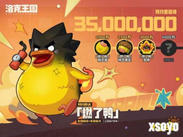 《洛克王国:世界》全网预约数已超3500万,预约游戏即可在公测获得「燃了鸭」名片卡、「燃了鸭」精灵蛋、「燃了鸭」精灵果实、「燃了鸭」奖牌。助力全网预约数,更有4000万里程碑奖励等待解锁!