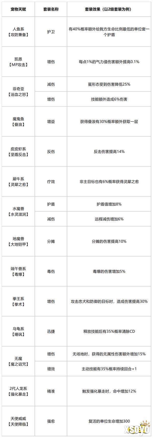 宠物套装及天赋调整