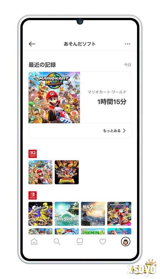 该移动端应用可以收到任天堂的游戏折扣通知,查看游戏最新新闻,将游戏添加到愿望单,并且可以浏览自己的任天堂主机游玩历史,包括Switch 1&2,WiiU以及3DS。