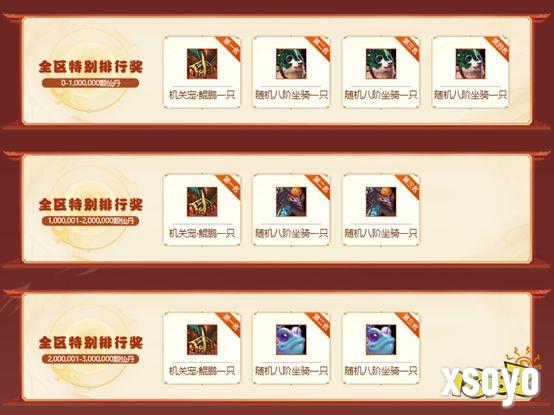 全区特别排行奖各第一名奖励全部为机关宠·鲲鹏一只!