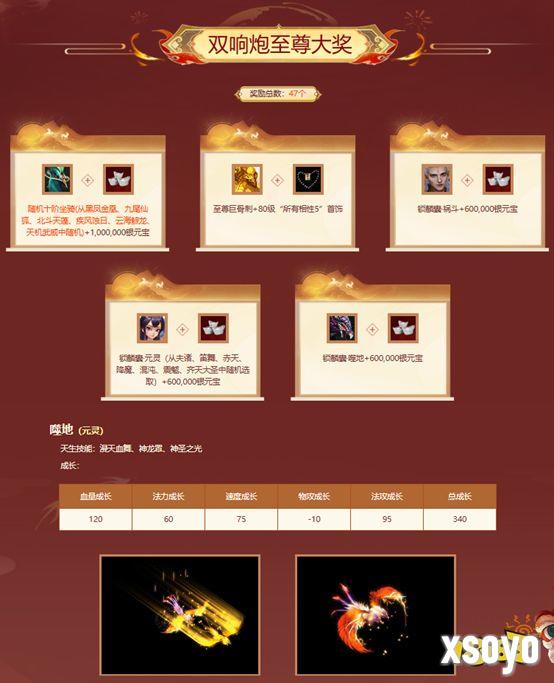 若全服熔炼仙丹总量达到第三阶段(300万颗),全阶段熔炼数量第一的玩家将直接获得十阶坐骑自选卡(不含玄火烛龙)。全阶段使用熔炼仙丹第一名玩家,且该玩家熔炼超17.5万颗仙丹,还可额外解锁随机仙元(从逐鹿、苍穹、无名、净瓶、昆仑、斗战胜佛中随机选取。)