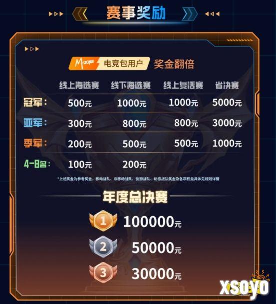 值得一提的是,本次复活赛延续了线上海选赛的便捷参赛形式,选手无需奔波线下。更具吸引力的是,复活赛奖金力度较线上海选赛实现翻倍,其中冠军可获1000元现金奖励,亚军800元,季军500元;若参赛战队提前办理动感地带电竞包,获奖奖金还能在此基础上再翻一倍,福利力度诚意满满。与此同时,复活赛的冠亚军战队将直接获得晋级山西赛区总决赛的资格,向着更高额奖金发起挑战。同理,办理电竞包奖金翻倍,万元奖金等你来拿!