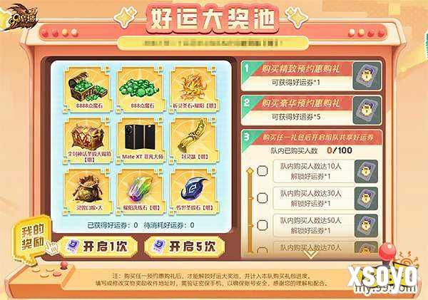 即日起至12月9日,参与预约即可组队瓜分千万魔石奖池!队伍每满10人全员必得封灵箓【赠】、祈灵圣石·耀阳【赠】、灵兽口粮·大等基础好礼,神火评分达标或购买超值礼包更可进阶解锁魔石瓜分券。队伍满百人后,队长还将限时获得“一呼百应”专属称号!预约期间,1.6折特惠礼包限时上架,购买即可参与抽奖,赢取Mate XT 非凡大师、8888点魔石等豪礼,队伍购买礼包的人数达成目标,所有已购买玩家均可额外获得抽奖机会,累计最多11次抽奖机会!