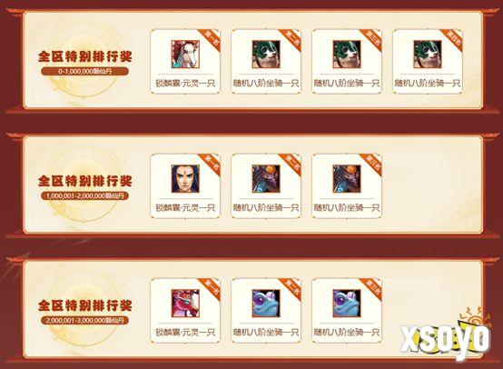 全区特别排行奖各第一名奖励全部为锁麟囊·元灵一只!