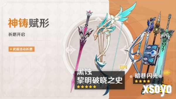 除此之外,「神铸赋形」活动祈愿也已开启,全新限定五星单手剑「黑蚀」和全新限定五星弓「黎明破晓之史」迎来概率UP!