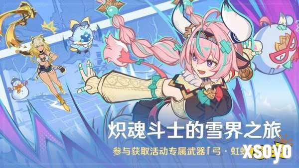 「月之三」版本中,全新版本主题活动「炽魂斗士的雪界之旅」开放,活动期间完成「雪白迷踪」「前哨龙迹」「飞玉趣掷」和「斗魂试炼」四个玩法,可获取「弓 · 虹蛇的雨弦 」,还可获得原石、智识之冕、活动专属武器精炼材料等奖励。